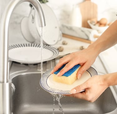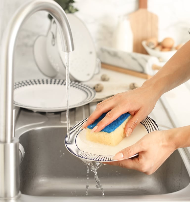 mencuci piring, panci, sayuran, buah, dan peralatan dapur lainnya