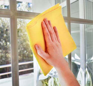 Usap permukaan kaca dengan kain kering agar debu tidak menggores kaca saat dibersihkan.Semprotkan cairan pembersih